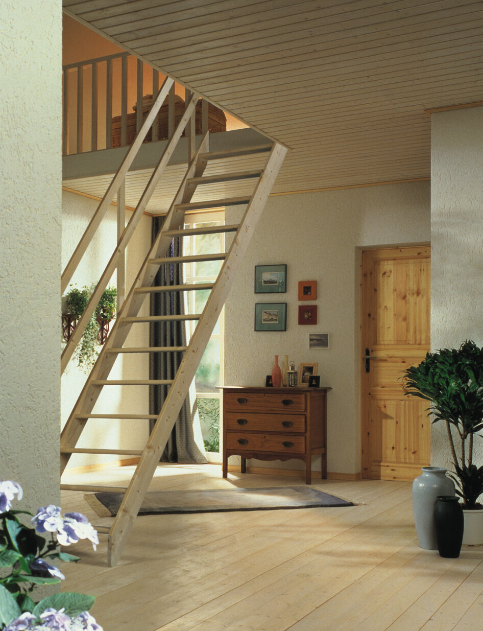 Les escaliers ne sont pas traités - prêts pour votre style personnel. Vernissez, teignez ou peignez dans des couleurs assorties à votre intérieur.